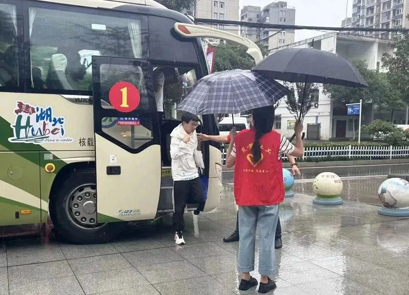 中午十二点,驻园社会组织的伙伴们已冒雨守候在小学旁边的社区广场。“同学们别着急,慢慢走,注意脚下积水!”来自鄂州市炎黄社工的芳姐,一边大声提醒,一边引导考生有序进入莲花小学休息点。看到有考生因雨势较大而步伐慌乱,社会组织的伙伴迅速上前,一对一用雨伞为考生遮挡风雨,护送他们穿过湿滑的广场。“谢谢你!差点就被雨淋湿了。”考生小周感激地说。“快进去休息,同学们,地上很滑不要奔跑!”伟创社工的小张笑着回应。