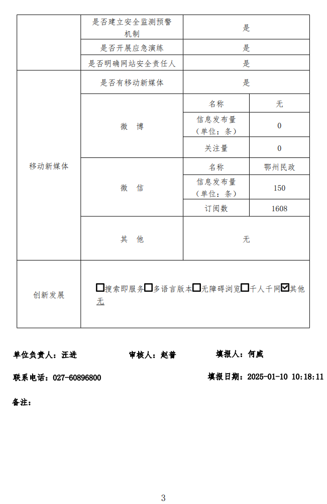 鄂州市民政局2024年度政府网站工作年度报表